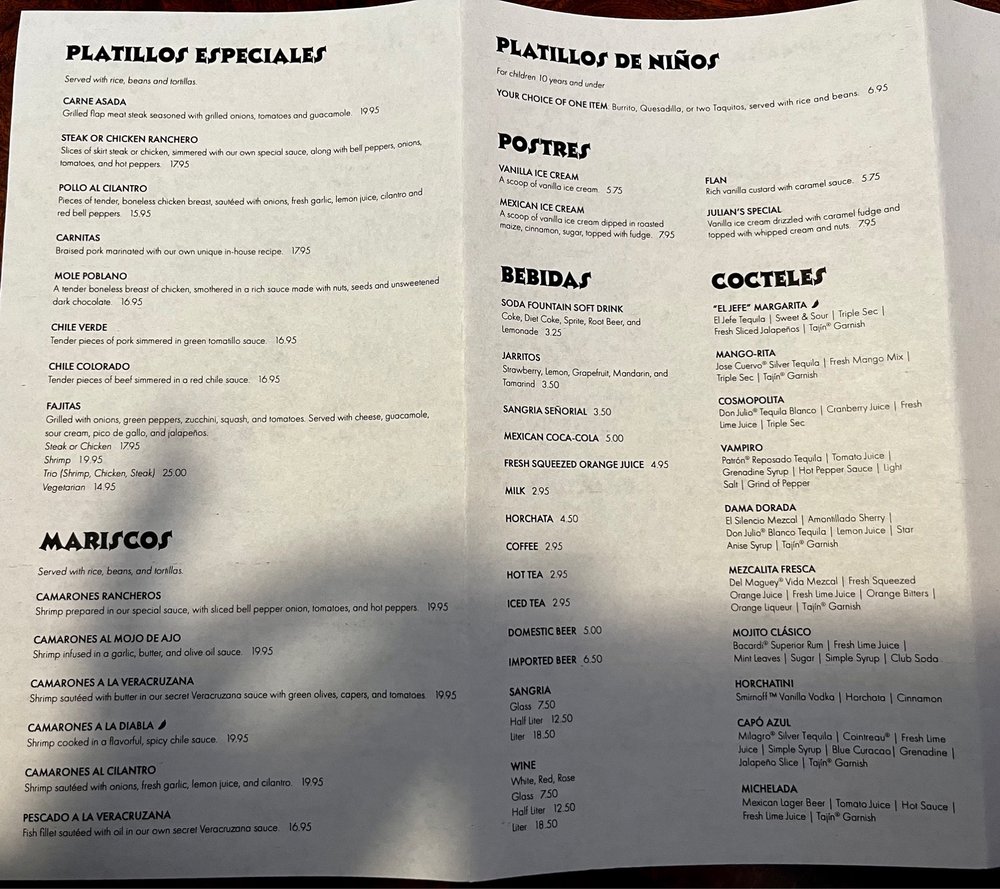 El Caminito Mexican Restaurant in Sunnyvale, CA offers a diverse menu featuring traditional Mexican dishes like Tostadas, Tortas, Botanas, and Platillos de Huevos. The restaurant provides a variety of dining options, from takeout to catering and offers many vegetarian choices. With a pool table, full bar, and outdoor seating, El Caminito creates a lively atmosphere perfect for groups and families. Customers praise the generous portion sizes and flavorful dishes like Coctel de Camarones, Flautas Suizas, and Huevos Rancheros. The ambiance is described as clean and inviting, making it a great spot for casual lunches or lively nights out. Overall, El Caminito Mexican Restaurant delivers a satisfying dining experience with its delicious food, welcoming atmosphere, and range of amenities.
